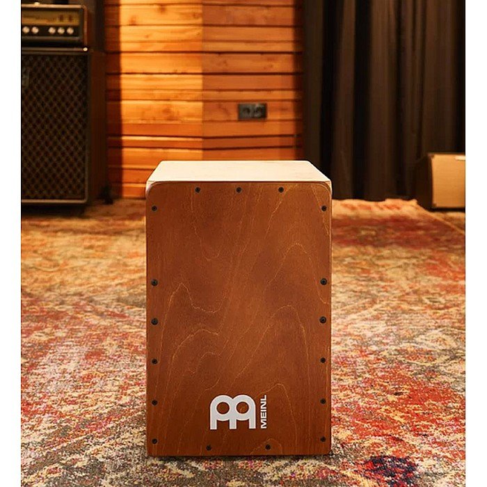 MEINL Snarecraft cajons combine articulate rhythmic punctuation with a warm tonal quality to give players a focused sound and wide dynamic range. Made of Baltic birch wood, MEINL Snarecraft cajons respond with a punchy low end thud and crisp slap tones. The highly expressive snare sounds come from dual internal sets of snare wires that are fixed against the frontplate. Rounded corners on the playing surface offer total comfort while maximizing your touch. Cajon from Snarecraft series that combines articulate rhythmic punctuation with a warm tonal quality to give players a focused sound and wide dynamic range. Its resonating body is made of 7 plies (9 mm) of Baltic birch wood (Betula pendula) with almond stain and responds with a punchy low end thud and crisp slap tones. The highly expressive snare sounds come from dual internal snares that are fixed against the non-stained Baltic birch front plate. Rounded corners on the playing surface offer total comfort while maximizing the player’s touch. The cajon also features rubber feet and rear sound port. Dimensions: 298 x 457 x 298 mm.