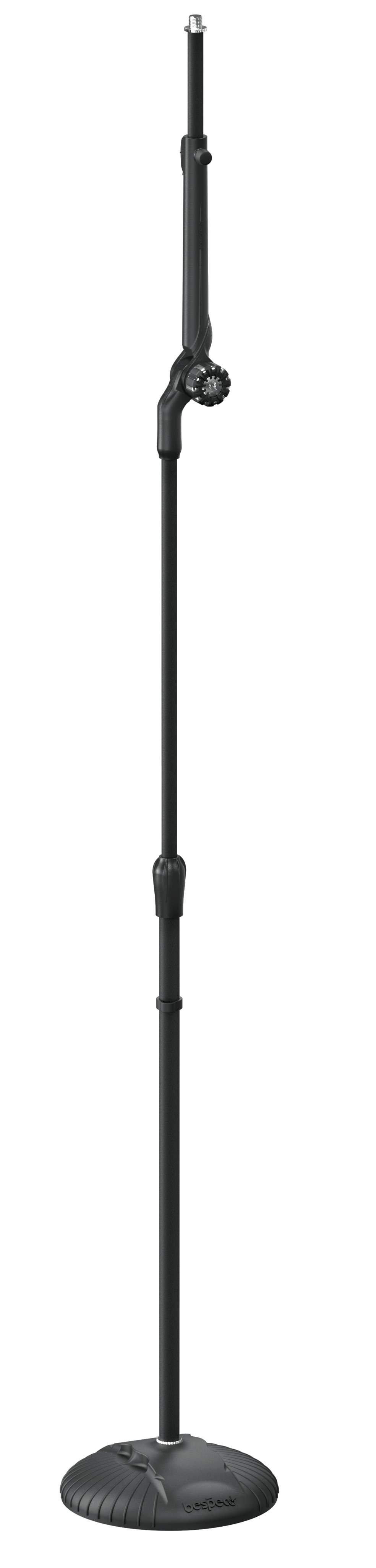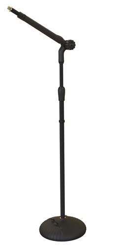 2 in 1 microphone stand with 270 ° rotating upper arm that transforms a simple straight rod into a giraffe rod also equipped with a telescopic arm. Zinc alloy details with rubber details. Round cast iron base to ensure reduced overall dimensions and high stability.