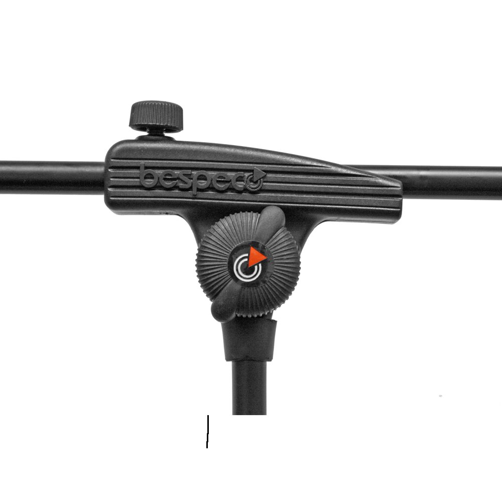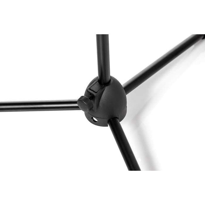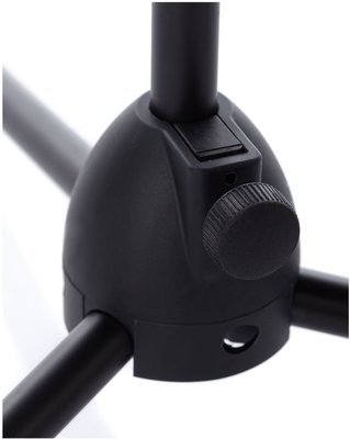 Microphone boom stand with structure in steel. Loaded nylon swivel joint with ergonomic knob for safety lock. Nylon boom and cable clamp and nylon clutch-style height adjustment. Tripod stand with loaded nylon base for a perfect sliding and stability. Height: max 200 cm. Extension: max 62 cm. Max carriage capacity: 2 kg. Weight: 2,90 kg. Colour: black