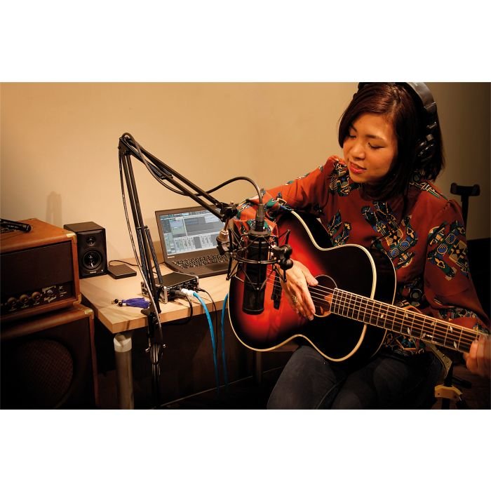 Most microphone stands need to be placed on the floor and therefore take up a significant amount of floor space. The TM-AM2 comes with a microphone stand that can be attached to a desk or table, and has a boom scissor arm that can be adjusted like that of a desk lamp. It can be set up in areas without floor space, and its position adjusted freely when not in use to keep it out of the way. It's a great choice for users who want to compose music or podcast online at home.