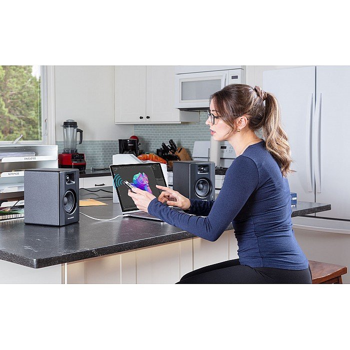 M-Audio BX3BT features controls on the rear panel that let you customize the EQ and active speaker placement. High- EQ and Low-EQ controls enable anyone to add or cut some extra rumble or clarity to their music. The M-Audio BX3BT features a Left/Right Active Speaker Position Switch letting you choose which speaker is sounding from the Left or Right side.