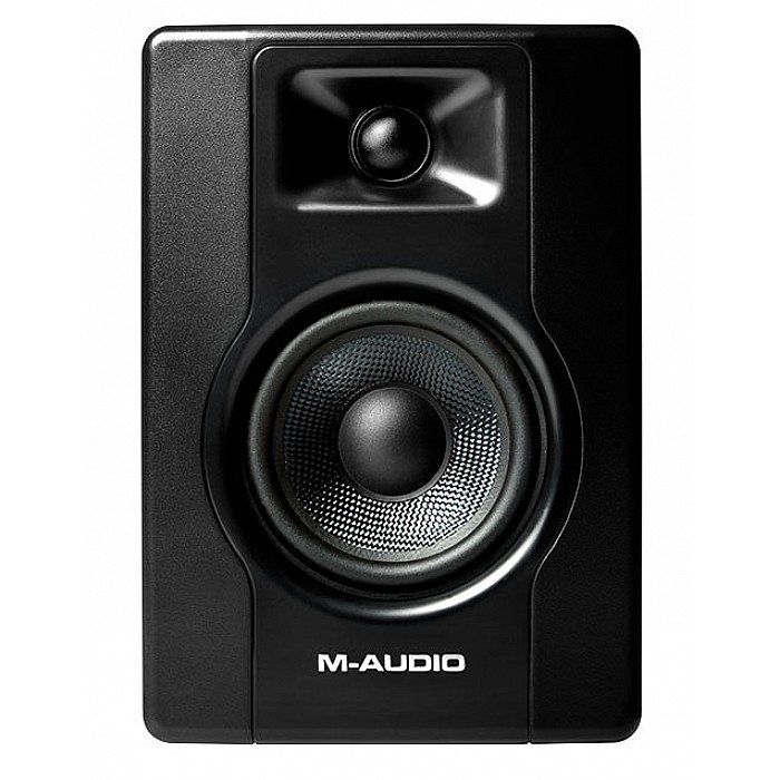 The M-Audio BX4 BT is a great-sounding powered multimedia monitor with a 4.5-inch Kevlar low-frequency driver and a 1-inch silk-dome high-frequency driver. A computer-optimized tweeter waveguide ensures precise stereo imaging, while high- and low-EQ controls enable you to tailor the speaker to your room. Bluetooth connectivity pairs effortlessly with any Bluetooth-equipped device for wireless streaming. You also get 1/4-inch, 1/8-inch, and RCA inputs for connecting a wide range of audio sources, plus a front-panel 1/8-inch auxiliary input for quick connection of playback devices. M-Audio BX4BT Multimedia Reference Monitors offer the flexibility to playback audio from any Bluetooth® streaming device with excellent studio quality sound. This opens the possibilities of playing audio from any Bluetooth® device including a turntable, phone, or even a computer to stream a reference mix. Get a better listening experience with our compact, powerful, Bluetooth® enabled M-Audio BX4BT multimedia reference monitors.