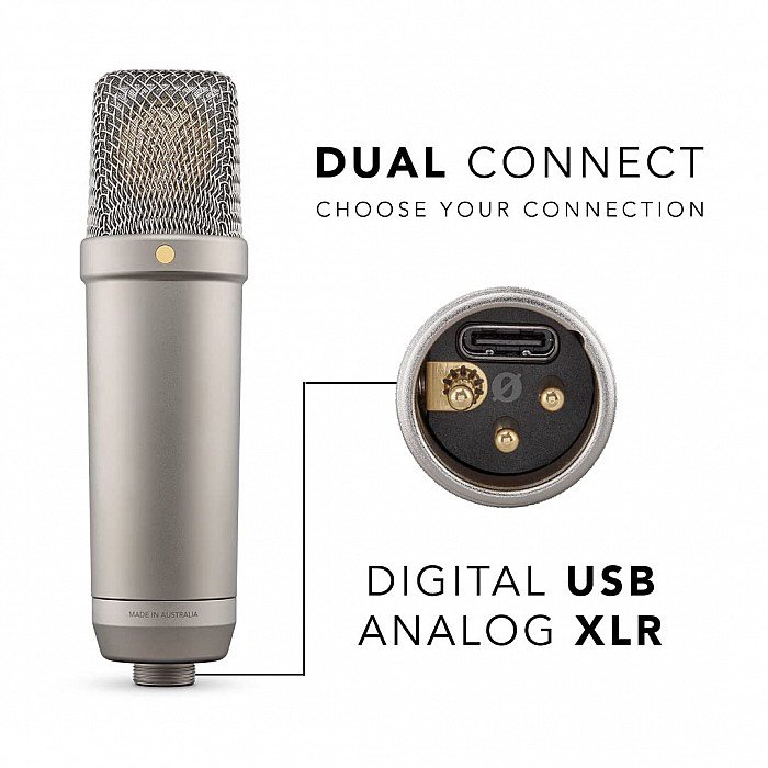 There are no limits to where and how you can connect the Rode NT1. Courtesy of a proprietary XLR/USB hybrid output design, the NT1 can handle conjunctive usage in various applications, including audio mixing hardware and recording interfaces. Want to record tracks directly to your computer? Switch to the USB-C connection, and your stunning NT1 signal quality is delivered effortlessly to your DAW. This cardioid condenser mic offers pro-level production for studios of all calibers without the limitations of the past inhibiting your studio space or creative capabilities.