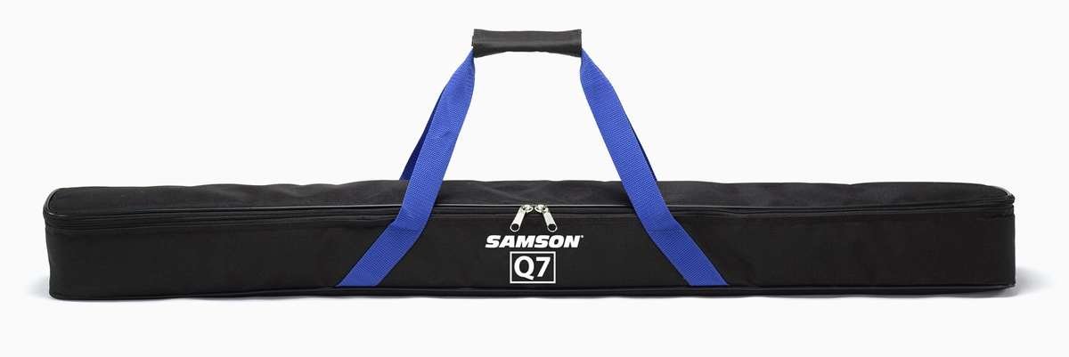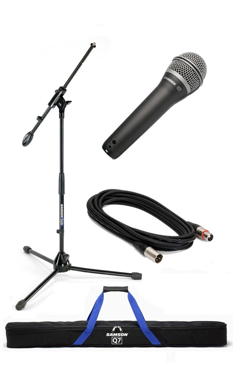 Everything you need in one package. Samson's acclaimed Q7 dynamic mic, a heavy-duty boom mic stand, durable mic clip, low noise cable and a rugged gig bag.