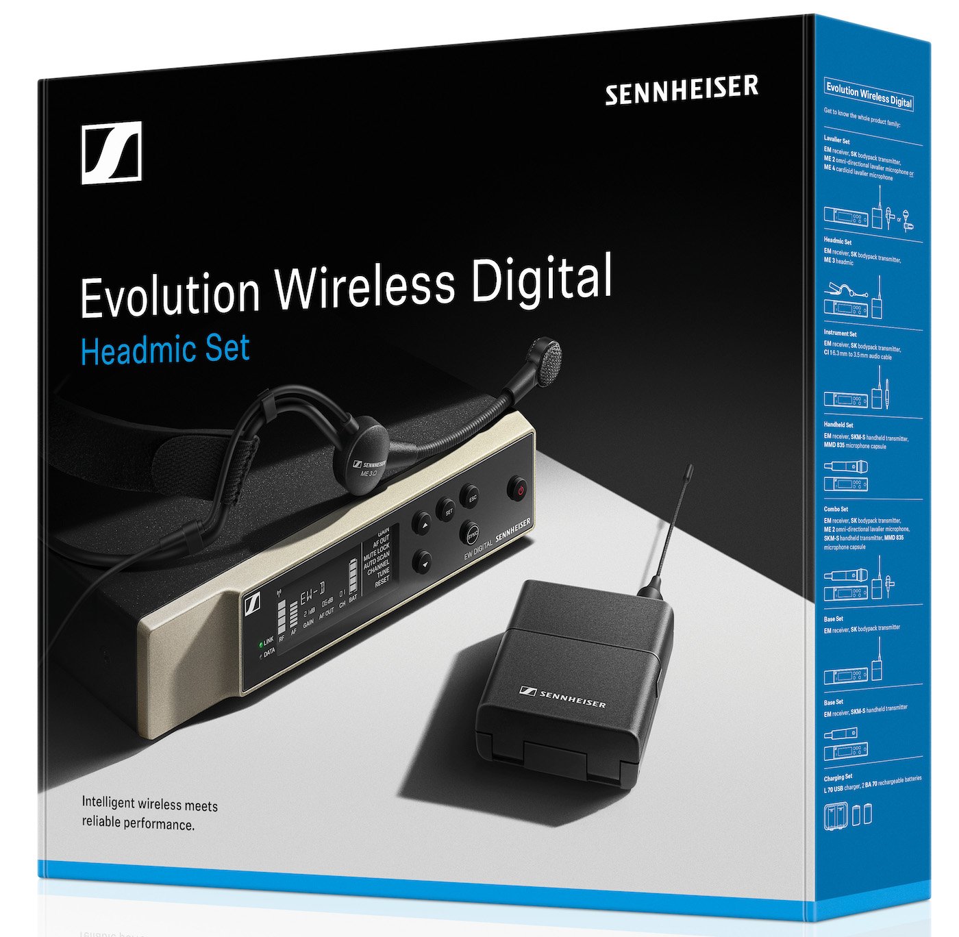 The Sennheiser EW-D ME3 is a complete wireless headmic solution for sport and yoga instructors, live singers and dancers, eSports players, and more. It's perfect for the high-intensity presenter/performer who need the flexibility to free up their hands. The system includes everything that's needed for a single user: a cardioid-pattern headset microphone, a body pack transmitter, a receiver, a rack kit, and accessories.