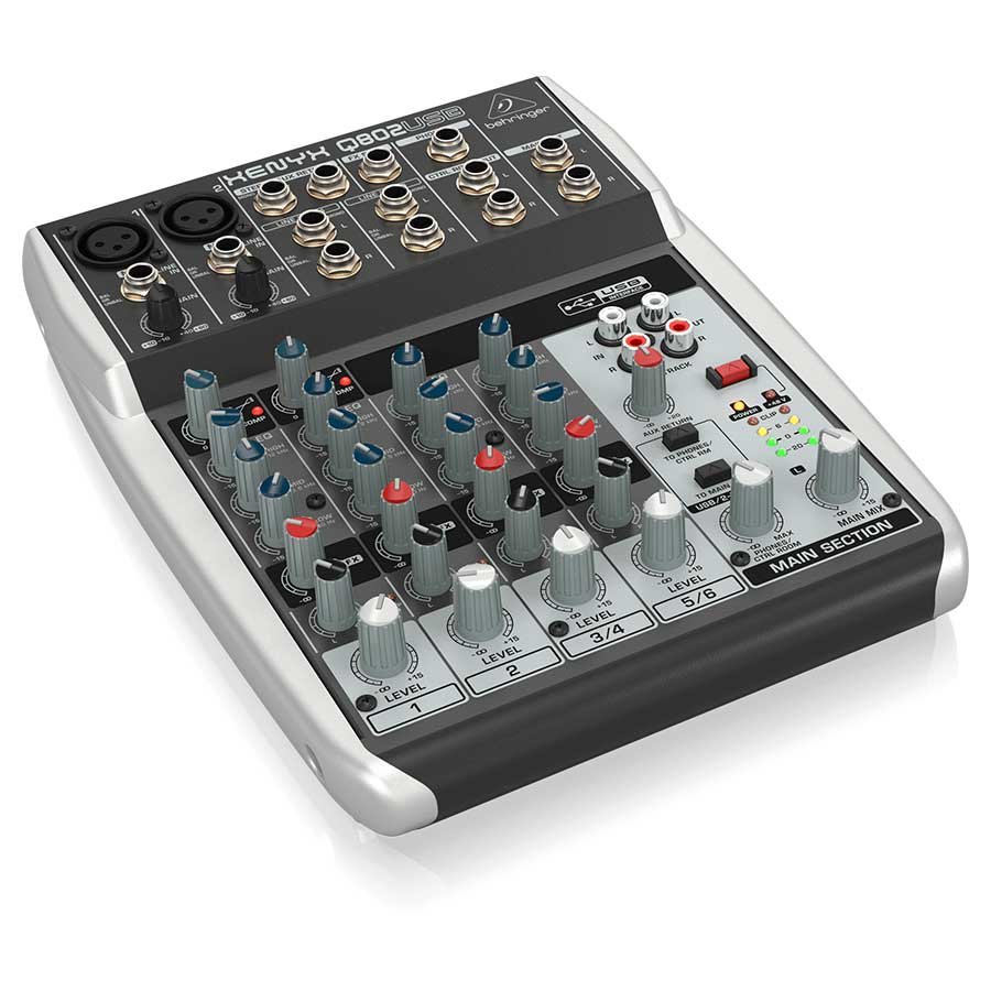 The ultra-compact XENYX Q802USB mixer’s 8 Inputs (2 mic, 2 stereo) allow you to effortlessly achieve premium-quality sound, thanks to 2 onboard studio-grade XENYX Mic Preamp and ultra-musical “British” channel EQ. And our easy-to-use “one-knob” compressors provide total dynamic control for the ultimate in punch and clarity, while respecting all the power and emotion you pack into every note. Add to this, the sweet forgiveness of our British-style EQ and superb ease of use – and the Q802USB becomes an incredibly versatile mixer for your live performances.