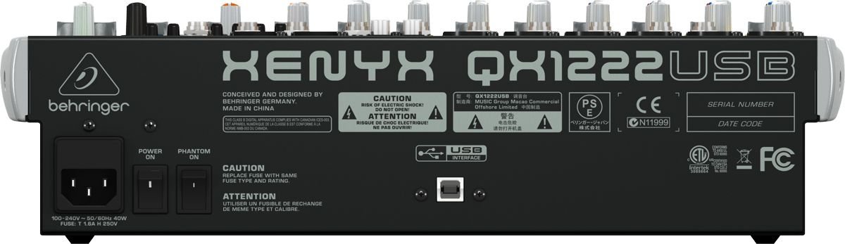The QX1222USB comes equipped with channel Inserts for inputs 1 – 4 for use with outboard FX, a stereo 7-band graphic EQ, which can be assigned to the main or monitor buses and our proprietary FBQ Feedback Detection System. Other features include full-sized faders for Monitor and FX Sends, our XPQ 3D stereo surround effect (creates a broader, enhanced stereo image), and a handy Voice Canceller function for removing vocals from pre-recorded media for “instant-karaoke” applications.