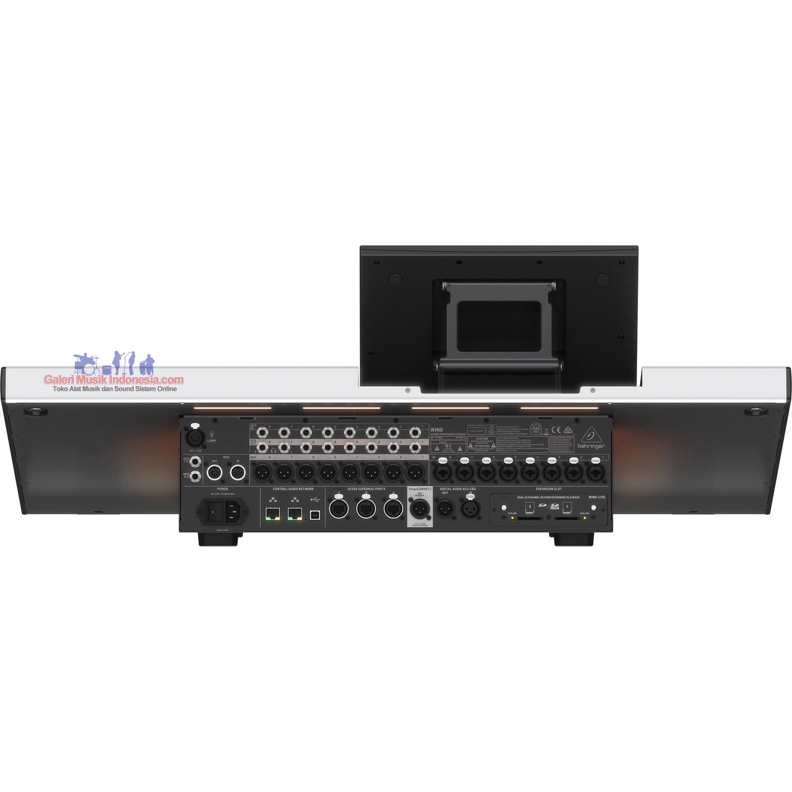 With 374 inputs and 374 outputs, a lot of digital connectivity is required. WING provides 3 AES50 SuperMAC audio networking ports for connecting digital stageboxes or sharing up to 144 input and 144 output streams with other mixing consoles. There are 48x48 channels of USB audio and another 64x64 channels of Audio over IP (AoIP module optional), plus AES/EBU stereo I/O. The WING expansion card slot, featuring the LIVE SD recording card or accommodating option cards for various standards, such as ADAT, MADI, DANTE, WSG, offers another 64x64 channels of audio in/out.