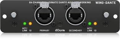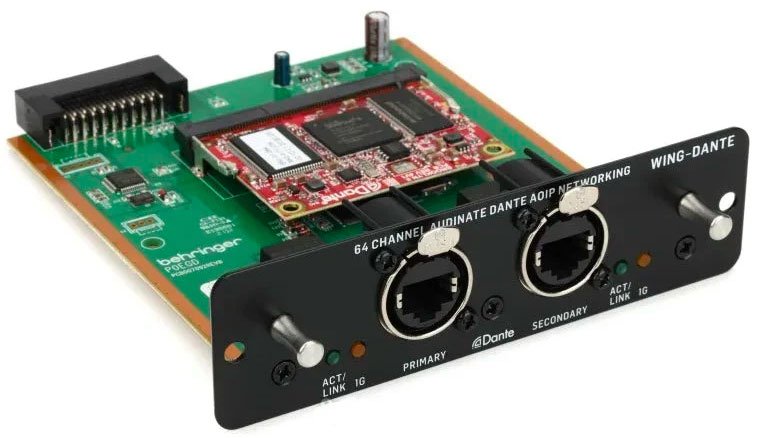 With the WING-DANTE 64-channel expansion card from Sweetwater, you can harness the power of the Behringer WING merged with high-speed Dante networking! The Behringer WING-DANTE expansion card is a drop-in replacement for the WING’s stock WING-LIVE card that allows you to interface with Dante networks using either standard 100Mbit/s or Gigabit Network infrastructure with DSCP-based QoS. The WING-DANTE supports mixed sample rates and bit-depth that coexist on a shared network. This expansion card offers 24-bit signal transmission, low-latency performance, and sample-accurate synchronization for pristine audio quality, and it includes a secondary input for establishing a redundant network. Furthermore, you can connect the WING-DANTE card to your computer and take advantage of Audinate's Dante Controller software for remote signal routing of it and your other Dante-enabled devices.