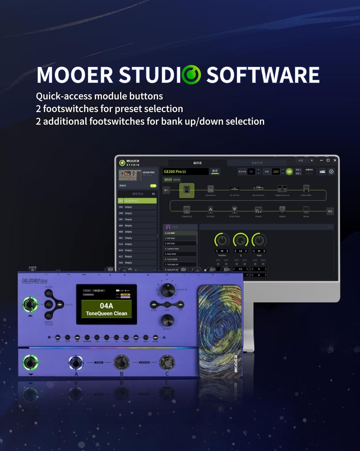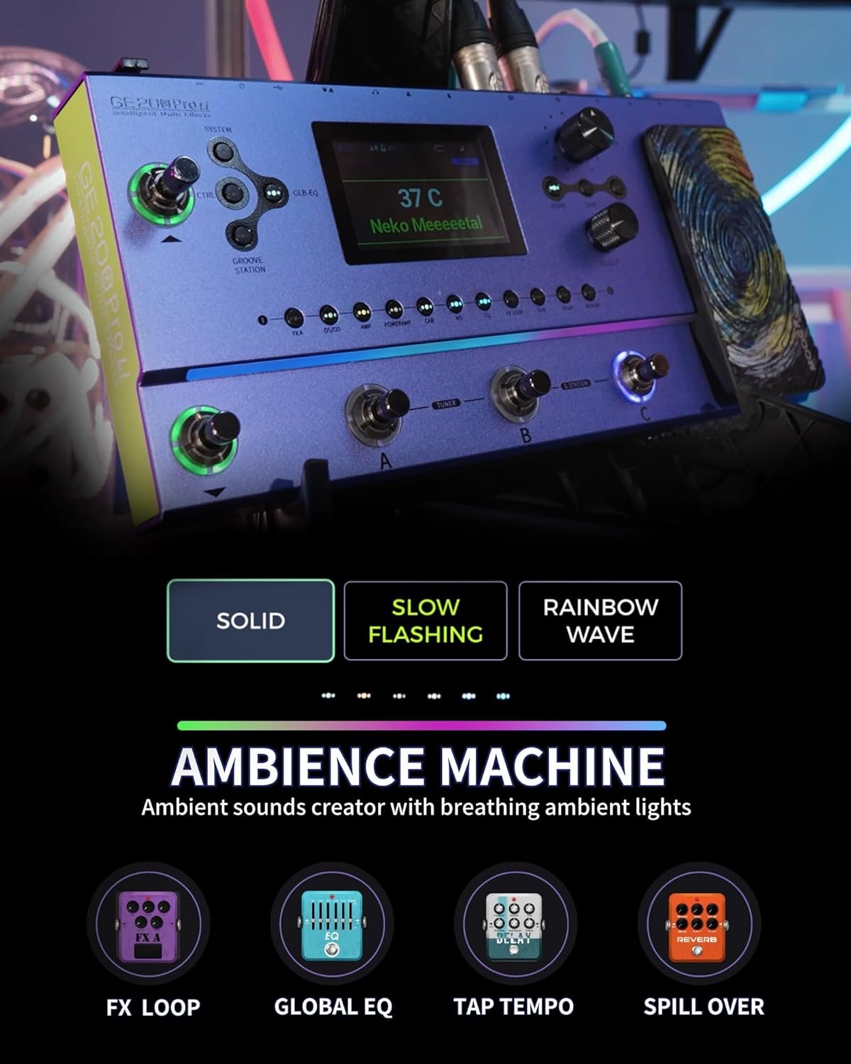 The GE200 Pro will be available in two different models: the standard GE200 Pro, powered by a traditional power adaptor, and the GE200 Pro Li, which can also run on an integrated Lithium-Ion battery. Furthermore, the GE200 Pro Li boasts a beautiful ambient light LED strip with customizable colors and display styles, adding a visual flair to any performance. Overall, the GE200 Pro presents itself as a much-anticipated update to the original GE200 while also providing a more affordable alternative to MOOER’s flagship GE1000.