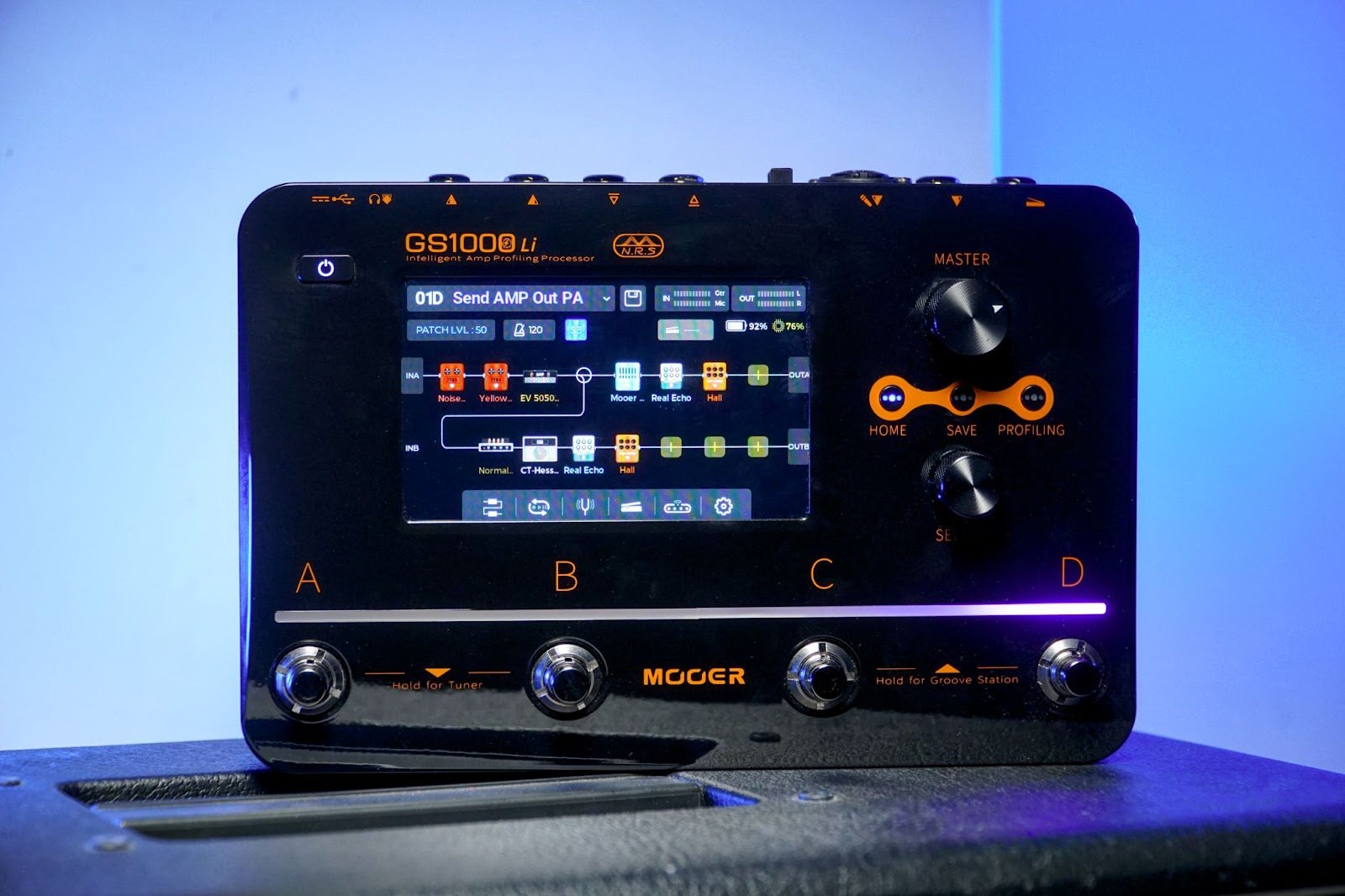 Introducing the GS1000 Intelligent Amp Profiling Processor, an augmented intelligent amp profiling processor. Built on MOOER’s advanced third-generation digital platform, the GS1000 Li introduces groundbreaking MNRS 2.0 technology, allowing guitarists around the world to emulate their favorite gear wirelessly for up to 6 hours with immense precision–specifically, for distortion pedals, preamps, amplifier heads, and cabinets. With this innovation, you can fully capture the essence of your favorite guitar gear without owning the physical hardware, letting you carry your favorite tones wherever you go. You can even use third-party IRs for cabinets of your choice, further enhancing the flexibility of this feature.  With this innovation, guitarists can fully capture the essence of their favorite guitar gear without owning the physical hardware, enabling them to carry their favorite tones wherever they go. Users are even able to use third-party IRs for cabinets of their choice, further enhancing the flexibility of this feature.