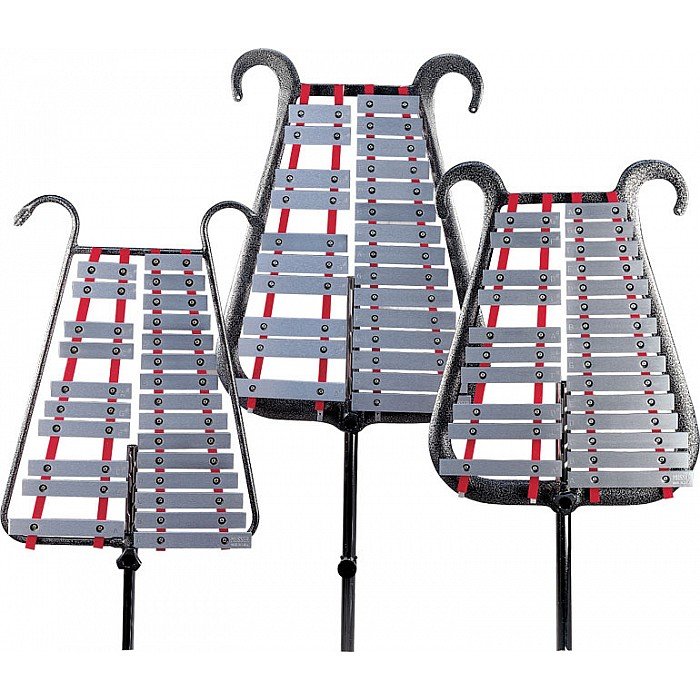 2-octave lightweight bell lyre (or Glockenspiel), 1-1/4" wide by 3/8" thick aluminum bars. Includes mallets, plumes, carrying strap, and cover.