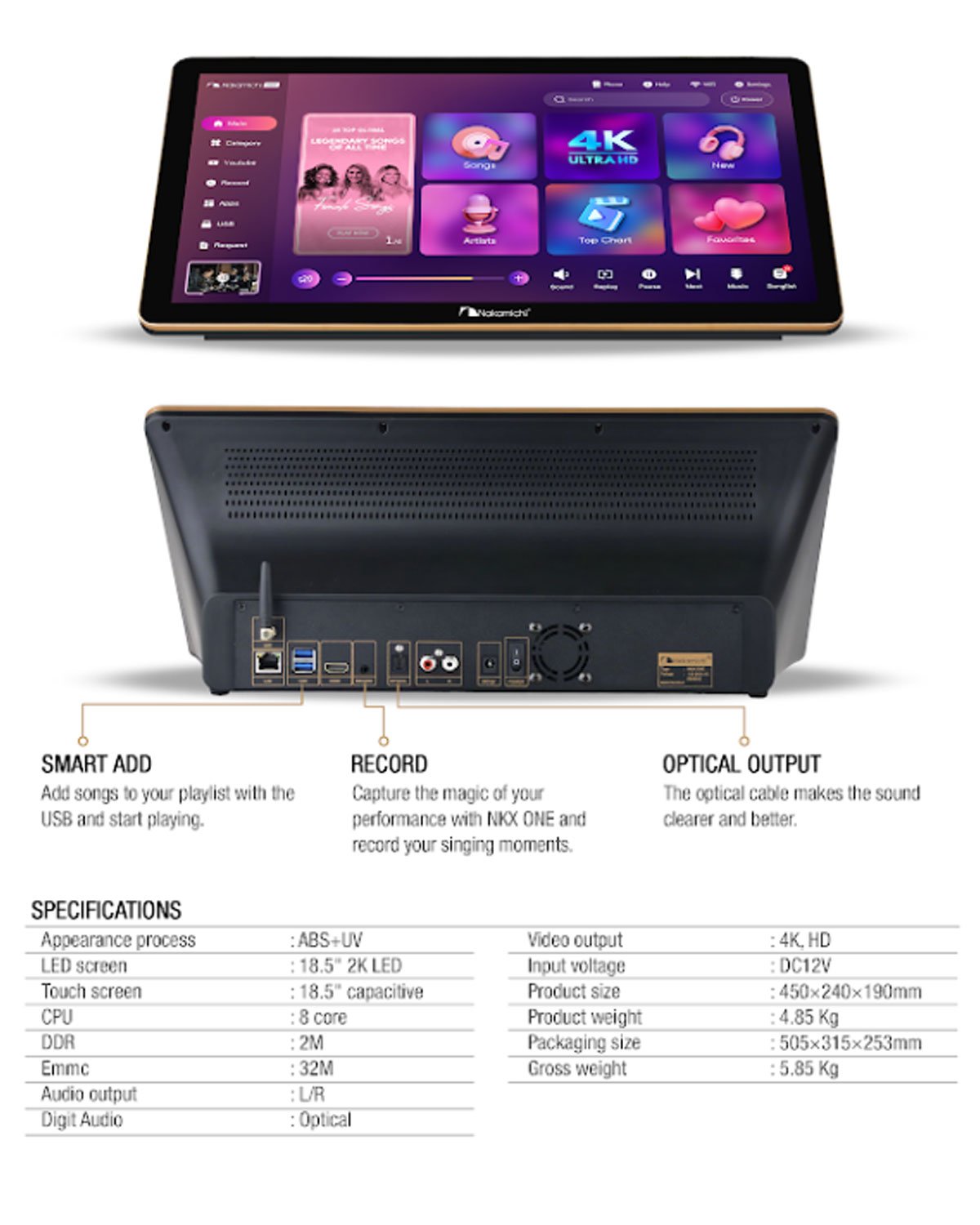 Spesifikasi Nakamichi NKX ONE with Touchscreen Player Karaoke and 3TB Storage Capacity