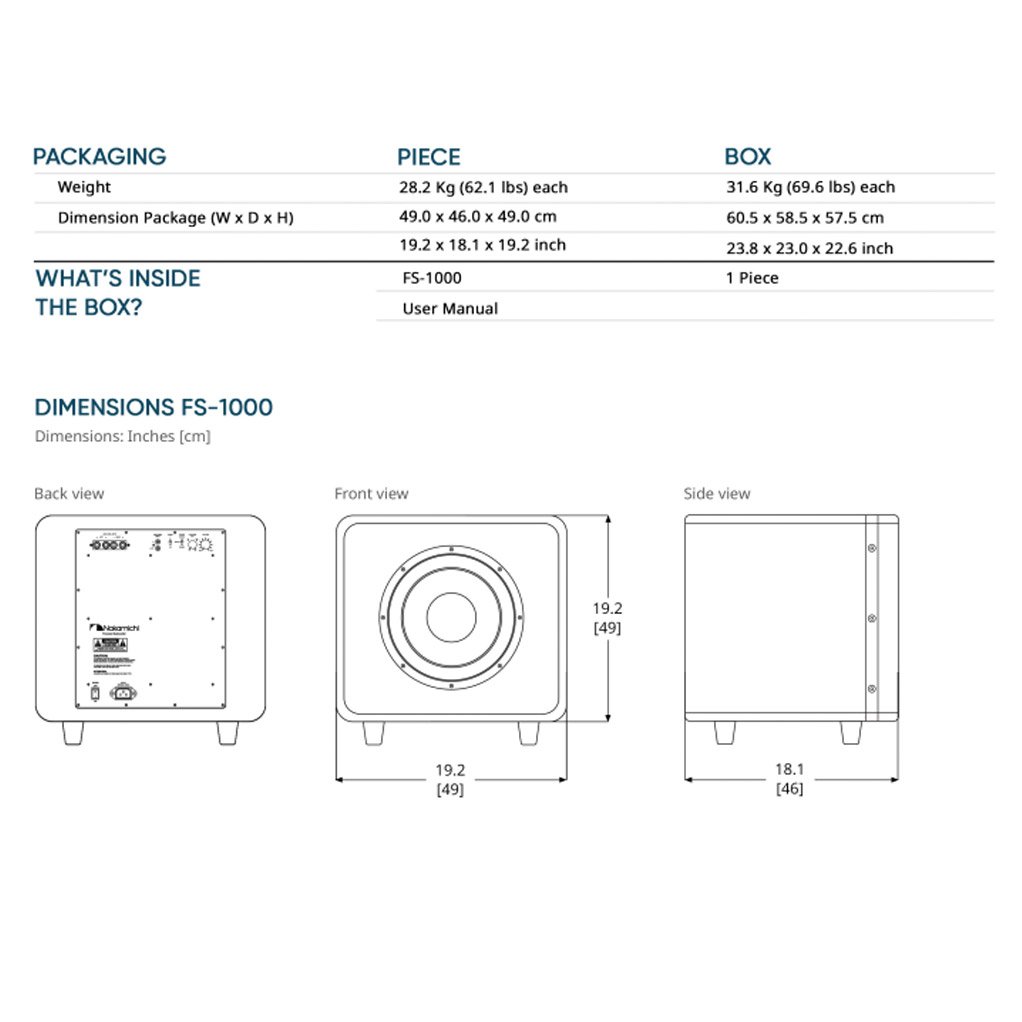 The FS 1000 subwoofers boasts punch characteristics that make it a standout addition to any audio setup. Prepare to feel the music like never before with our subwoofer, designed to deliver a seismic impact to your audio experience. boasting unparalleled power and distinctive "punchy" character, this subwoofer takes your lows to new depths, ensuring every beat and bassline resonates with intensity.
