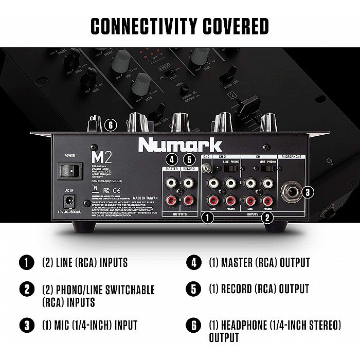Connectivity covered! That’s a Numark guarantee! With M2 seamlessly connect to your PA system and record your performance with dedicated master and Record RCA outputs. Whatever your needs, M2 guarantees to assimilate with ease.