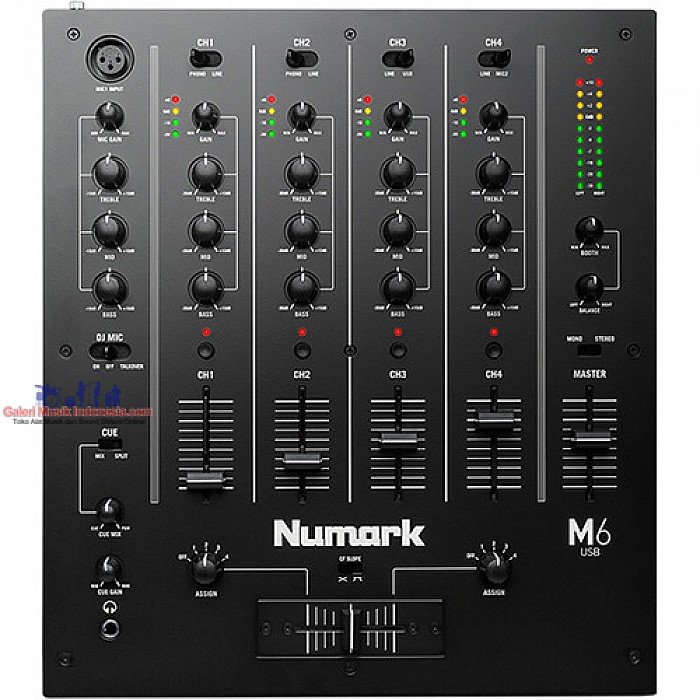 You will enjoy a complete range of performance essentials in M6, including three-band EQ and LED metering per channel. M6 has a replaceable crossfader with slope control, and you can assign any channel to either side of the crossfader.