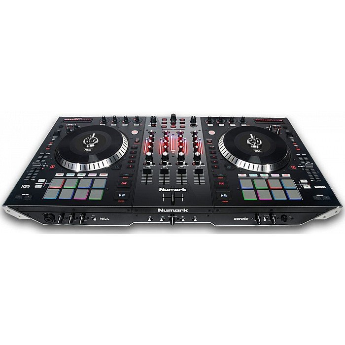 Numark has reimagined the widely popular NS7 giving DJs and controllerists a complete new set of features to enhance their performances. Introducing the NS7 MKII, with dual 7” motorized turntables featuring 3600 ticks of resolution, high- and low-torque turntable settings with 35rpm and 45rpm options, and an added set of mixer channels that expand on the previous version making it compatible with 4-deck mixing features found most of today’s professional DJ platforms. Now you can mix together two of your favorite songs, while adding in parts of a third, or even mix-in your favorite acapella over the entire mix for a new creative way to enhance your performance. Numark also added in a bank of Akai Professional’s legendary MPC pads for instant triggering of loops, samples and dedicated iZotope effects controls. The NS7 MKII also comes with a copy of Serato DJ that’s jam-packed with features designed for controllerists including new iZotope MULTI FX, 4-deck control, sample player, multi-deck sync, smart crates, and so much more. Features