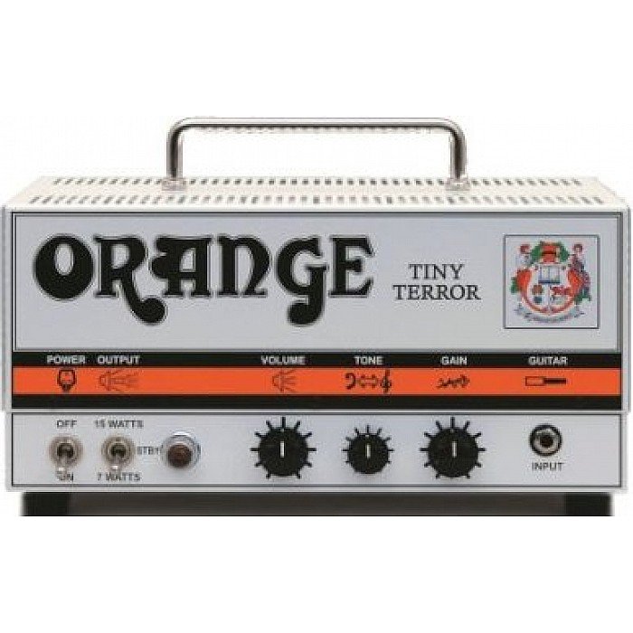 The 15W Orange Amplifiers Tiny Terror TT15 Mini guitar amp head offers portability in an all-tube amp. The TT15 Tiny Terror boasts a 2-stage preamp that has a massive tonal range using just 3 controls. When driven, the little Orange Tiny Terror amp has almost as much gain as most 4-stage lead channels.