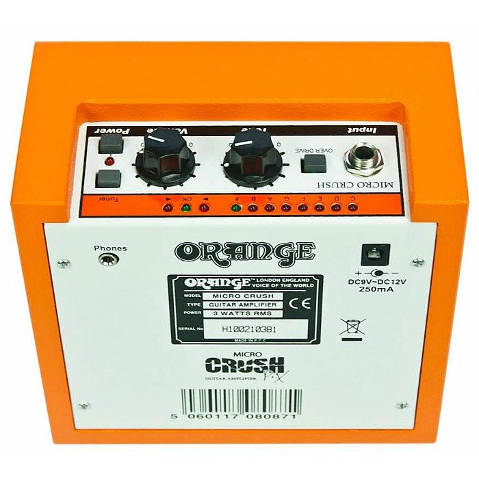 The Orange Micro Crush PiX Series CR3 amplifier has all the cool looks of its bigger brothers. But it's not just cool looking. Plug into the little Orange Micro Crush amp, and you'll soon realize it is Orange through and through. Orange gives the Micro Crush amp the brand's signature Orange Tolex cover and woven speaker grille and, of course, Orange's picture-frame edge style.