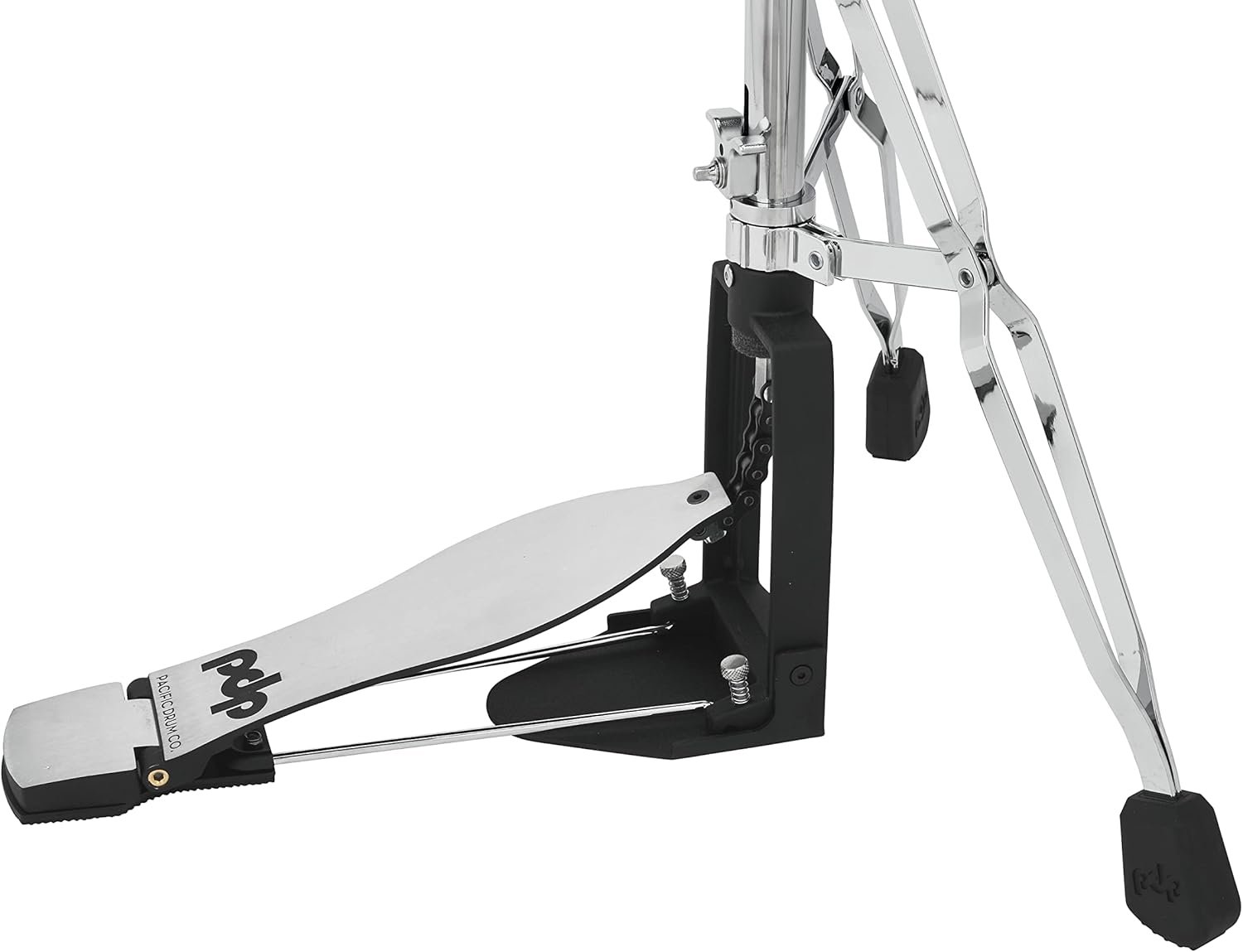 The 800 Series 2-Leg hi-hat stand is a medium-weight unit that is packed with pro-inspired features. designed by DW in California, this versatile stand comes with a smooth cast footboard with integrated needle bearing hinge, Quick-Release hi-hat clutch, direct cymbal seat adjustment, composite memory lock, and double-braced legs with oversized anti-slip rubber feet. There are plenty of drummers who regularly gig around town. And when they do, most of them use PDP 800 Series hardware. Why? Because 800 Series hardware is dependable, easy to set up, and won’t break the bank. This stand, the 800 Series HH812 Hi-hat stand, features two double-braced legs for players who use double bass pedal setups. It comes with a needle bearing hinge and stout chain drive for outstanding responsiveness and feel. Composite memory locks enable easily repeatable height setups while the quick-release hi-hat clutch makes it easier than ever to tear down at the end of the set. Boasting pro-level features and stellar durability, the PDP 800 Series Hi-hat Stand is sure to become your new favorite hi-hat stand in no time.