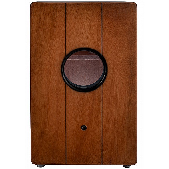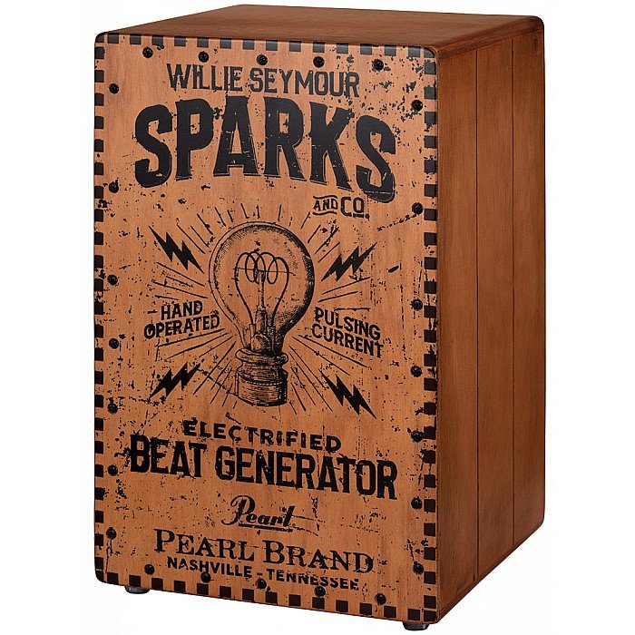 The Pearl Electric Crate Cajon includes a Piezo Trigger and 1/4" Jack so you are ready to plug and play. The body of this e-Cajon is constructed using Shorea plywood and has a crate design that features a meranti faceplate. Meranti is a wood known for its relative hardness and straight grain making it ideal for cajons. A built-in bass port magnifies the massive low-end tone of the Cajon while two sets of fixed snare wires provide a bright, crisp snare response. Whether you are plugged in or playing acoustic the Electric Cajon has a great bass sound. A preinstalled Piezo Trigger and 1/4" jack will allow you to plug into any PA or amp to amplify the sound. This Cajon has a silkscreened finish that features a classic Willie Seymour Sparks design.