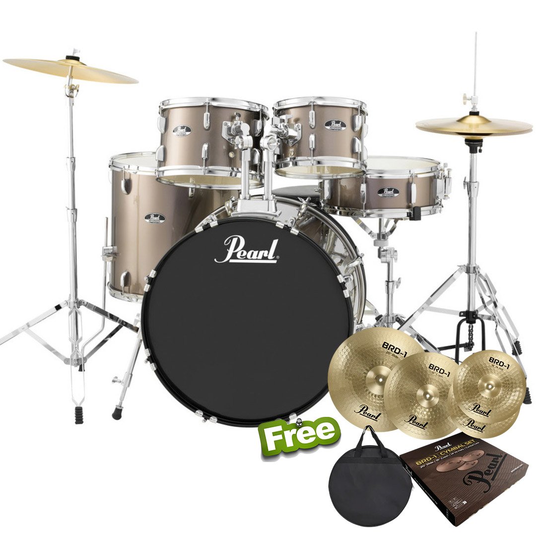 The Pearl RS525SC Roadshow is a complete 5-piece drumset with first-rate components at a truly remarkable price! For beginning drummers, starting out with good equipment is essential and makes playing so much more enjoyable. Pearl has put together this kit with high-quality components including 9-ply 7mm polar shells, double braced hardware, triple flanged hoops, high-quality cymbals and everything needed to start playing.