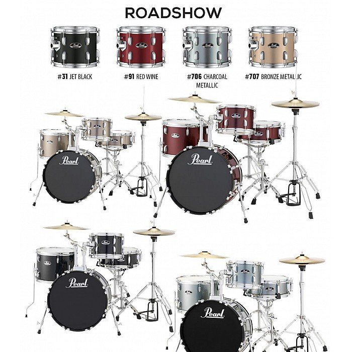 Made of 9mm poplar shells, the Pearl Roadshow 4-Piece Drum Set w/ Hardware has everything that the beginning drummer needs to get started right out of the box!