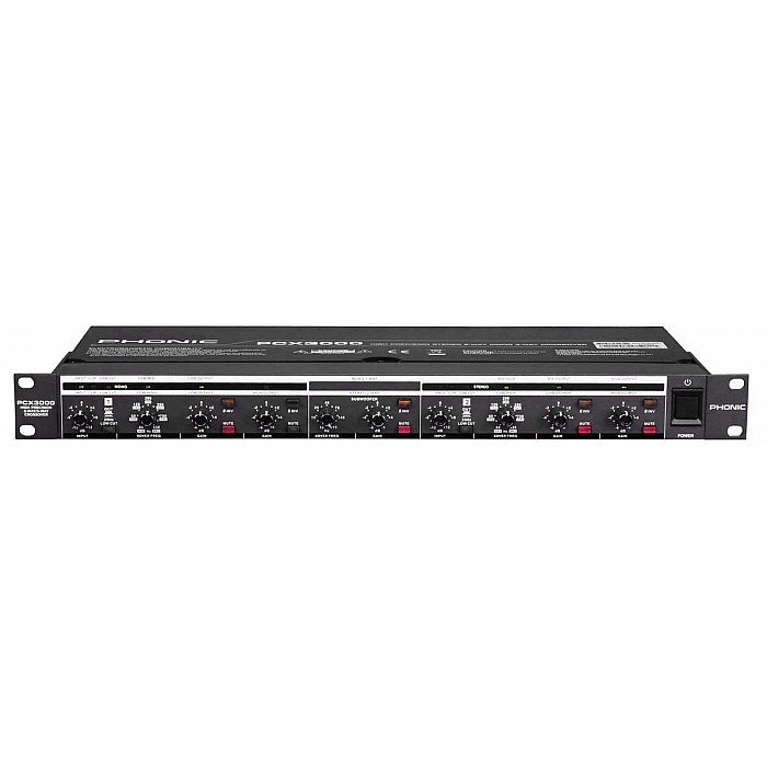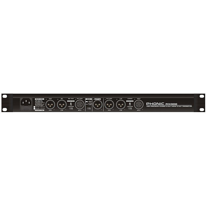 Phonic’s PCX3000 is the authentic soundman’s crossover for front of house or monitoring systems in all applications – from studio to live environments. Featuring 24dB/octave, state-variable Linkwitz-Riley filters giving you absolute frequency separation. Totally flat summed amplitude response with zero phase difference. Independent IGC limiter per output and adjustable time delay for phase alignment between drivers with phase reverse switch. Switchable 25Hz subsonic filter; switchable EQ; Low Sum function; servo-balanced XLR connectors (2 in, 5 out).
