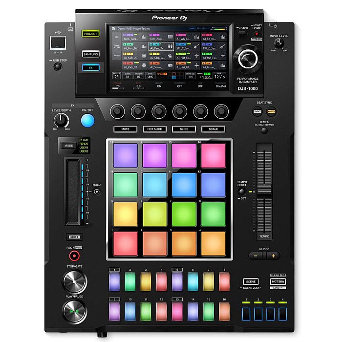 Designed to integrate seamlessly into any DJ booth, the Pioneer DJ DJS-1000 sequencer and sampler opens up amazing new performance possibilities. Featuring live sampling, onboard effects, 16-track sequencing, 16 performance pads, and a 7" color touchscreen display, the DJS-1000 is a comprehensive instrument on its own. And its creative potential really comes alive when you begin sampling audio in real time, remix it, and manipulate sounds on the fly. And with MIDI clock and Beat Sync for synchronizing with external devices, the Pioneer DJ DJS-1000 is ready to integrate with virtually any DJ rig. When you sample audio with the Pioneer DJ DJS-1000, it's instantly ready to loop and be sequenced for creative remixing. Assign your samples and loops to any of the 16 sequencer tracks, then trigger them with the corresponding performance pads.