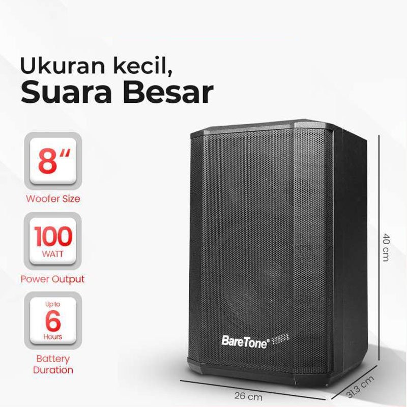 BareTone MAX08BX 8 Inch Portable Speaker - 1 Year Official Warranty