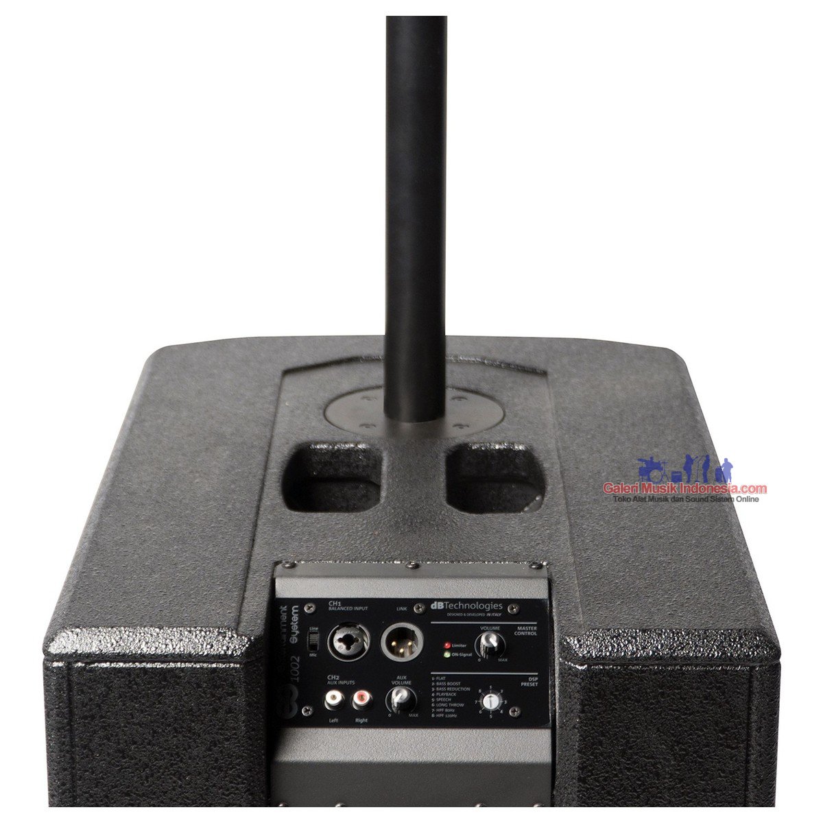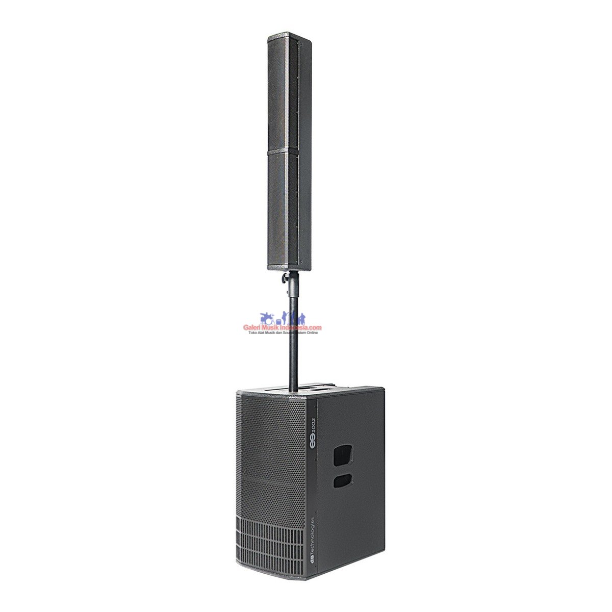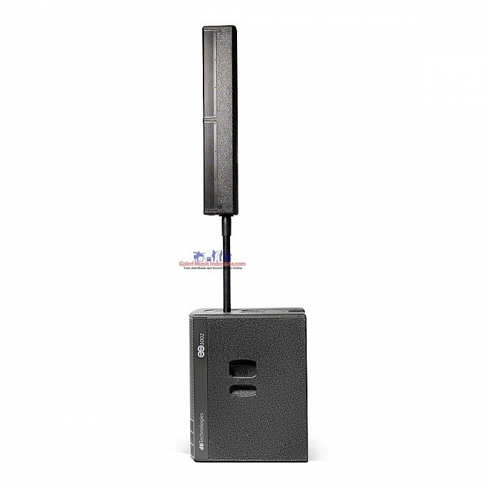 ES1002 comes with 1 subwoofer and 1 column top, both powered by a class D DIGIPRO G3 amplifier delivering 1800 W peak.