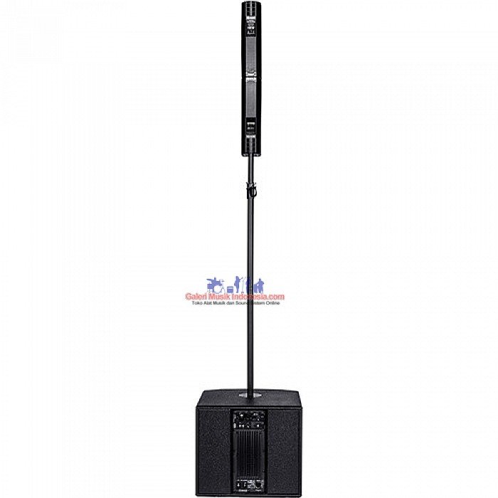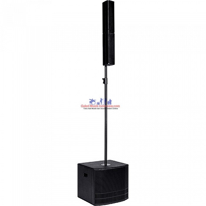 The satellites are connected top-on-top and are placed on the subwoofer through the supplied D25mm pole. The system is used in mono mode so all inputs are routed to both outputs in mono.