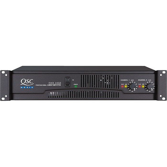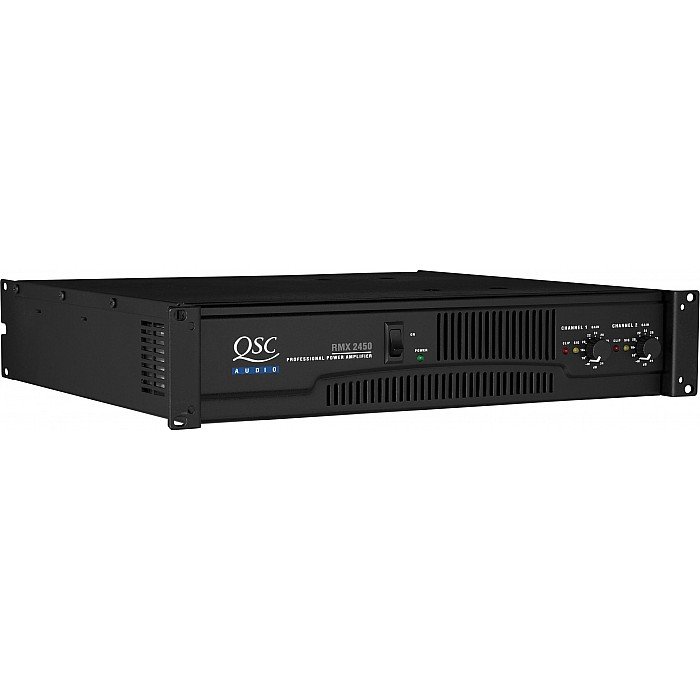 In the QSC RMX 2450 Power Amp, QSC has combined their rugged high-output designs with the latest circuit technology to deliver unmatched performance at a breakthrough price. RMX power amps require only 2 rackspaces and feature 1/4" TRS, XLR, and barrier strip balanced inputs; binding post and Neutrik Speakon outputs; front-mounted gain controls for easy access; independent and defeatable clip limiters; selectable low-frequency filters (30Hz or 50Hz) that protect speakers and increase headroom; signal and clip LED indicators; independent DC and thermal overload protection on each channel; variable-speed fan. All include a 3-year warranty. Stereo: 500W @ 8 ohms, 750W @ 4 ohms, and 1,200W @ 2 ohms. Bridge mono: 1,500W @ 8 ohms, 2,400W @ 4 ohms.