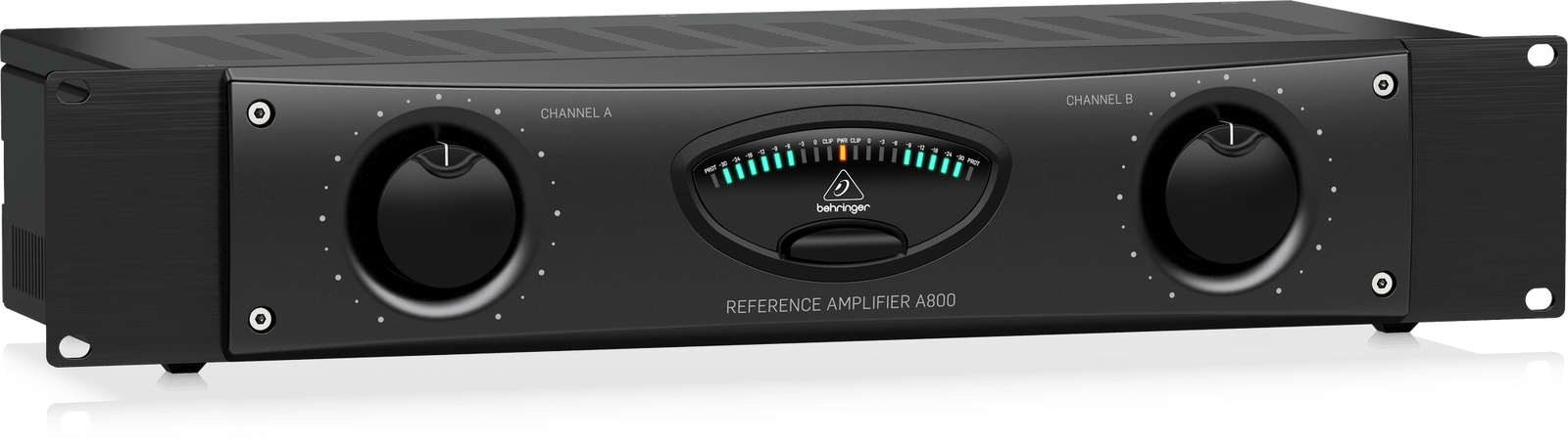 Need a power amp to drive your passive studio monitors? Behringer’s Reference Amplifier A800 offers audiophile-grade sound at a price that’s ideal for home and project studios. The A800 offers impressive clarity and transparency, thanks to its ultra-linear performance. What’s more, its advanced convection-cooling technology ensures stable, noise-free operation, while its servo-controlled design accommodates nearly every passive speaker system. You also get independent DC, LF, and thermal overload protection on each channel to safeguard the amp and your speakers. The A800 is at home in numerous applications — it offers both stereo and bridged-mono modes, precise level metering, comprehensive input connections, and rugged twist-lock binding post outputs.