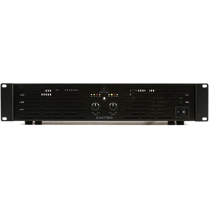 The Behringer KM750 750-watt stereo power amplifier combines ample power with efficient performance. Behringer's Accelerated Transient Response design coordinates your speakers with the speed of the signals that are passing through them, ensuring a tight and punchy sound. Easy-to-use front panel controls and LED indicators make operating the KM750 child's play. The XLR, 1/4", and RCA input connectors on the KM750's rear panel accommodate nearly any source. Connect your speakers securely to the KM750's dual locking connectors or touch-proof binding posts. A built-in limiter ensures maximum output with reliable overload protection. The Behringer KM750 is a workhorse 750-watt stereo power amplifier.