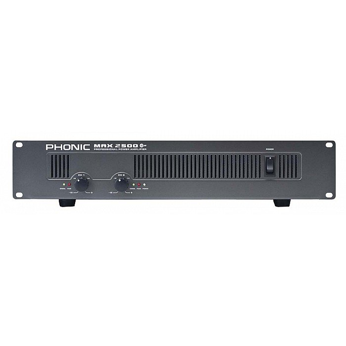 Phonic's MAX 2500 Plus Power Amplifier provides 1500 Watts of power at 8 ohms (bridge mono) or 750 Watts at 4 ohms (stereo) - ideal for medium to large-size clubs, churches, auditoriums and more. Input to the MAX 2500 Plus amp is achieved via balanced XLR or phone jack, and output is achieved through either Speakon-type connectors or binding posts. The MAX 2500 Plus features ground switches, and the option to choose between stereo, parallel and bridge operating modes, making this amplifier ideal for real world application.
