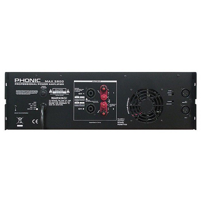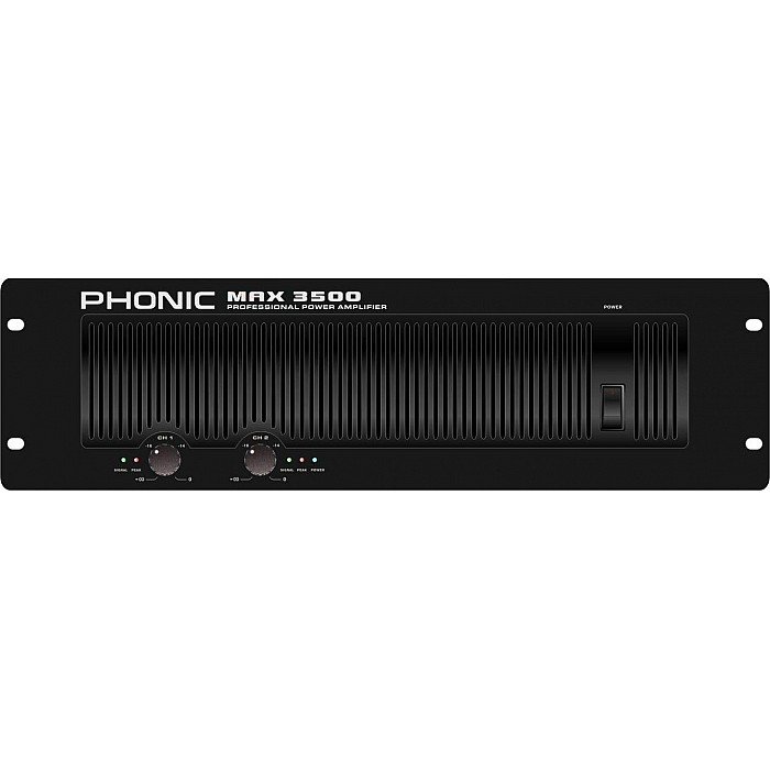 Phonic's MAX 3500 Power Amplifier provides 2400 Watts of power at 8 ohms (bridge mono) or 1200 Watts per channel at 4 ohms (stereo) - ideal for medium to large-size clubs, churches, auditoriums and more. Input to the MAX 3500 is achieved via balanced XLRs, and output is achieved through either professional speakon-type connectors or binding posts. The MAX 3500 features ground switches, and gives users the option of choosing between stereo, parallel and bridge operating modes, making this amplifier ideal for real world application.