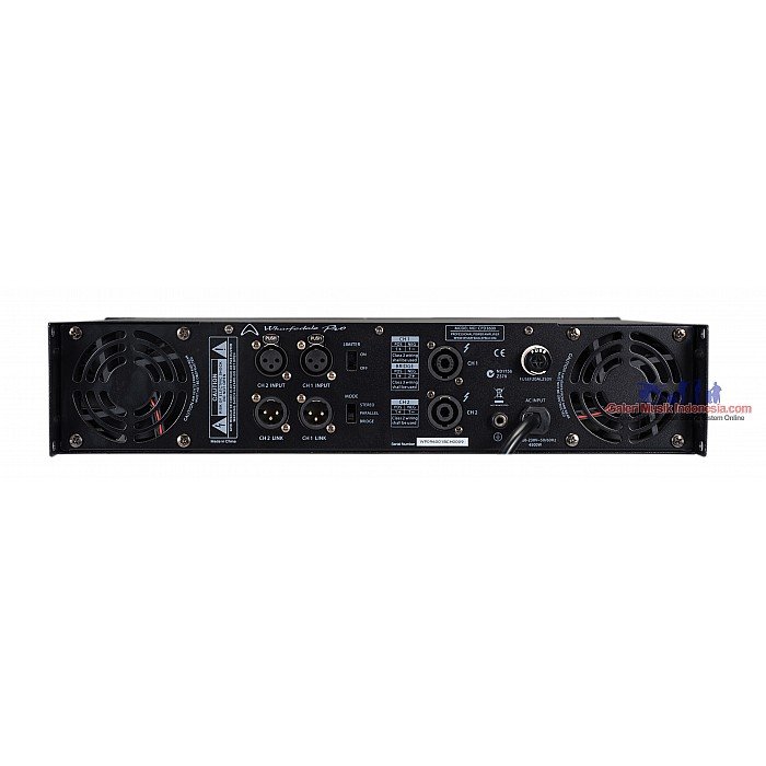 The CPD3600 is part of Wharfedale Pro’s latest line of professional power amplifiers driving earth shaking audio from the front of your venue, all the way to the back. For using in stereo the amplifier delivers 870W RMS per channel at 8 Ohms and 1300W RMS per channel at 4 Ohms; a suitable power for medium to large sized complete PA systems for mobile and fixed installation. In bridged mode at 4 Ohms the amplifier generates 3600W RMS. This huge power means the amplifier can also integrate itself with larger touring rigs and installs where long throw, extremely high power audio is needed. Technology Working in stereo, parallel and bridged modes CPD3600 is built for a multitude of sound system formations. Brand new class H topology has resulted in a dynamic, high headroom amp made for propelling your loudspeakers through thick and thin with complete clarity. Precision Control Large rotary dials accurately adjust gain levels, and you will know when to do so from the clear and simple front panel. A 4 segment led formation displays shows vital power status, level, limit and protect information, keeping the sound engineer in the know. Protection & Durability The CPD3600 is rife with technology that offers complete protection for your peace of mind. A built-in switchable limiter, allows over 8Vrms signal through without distortion. Additionally it is equipped with thermal, overcurrent, DC and output short protect features. Professional audio equipment is an investment. That is why the adept components of the amplifier are housed within a 2U steel chassis which is universally rack mountable. This hard wearing all-steel casing also features a removable air filter in the front bracket which can be cleaned or replaced easily. Features • 8 Ohms x 2: 870W RMS |
