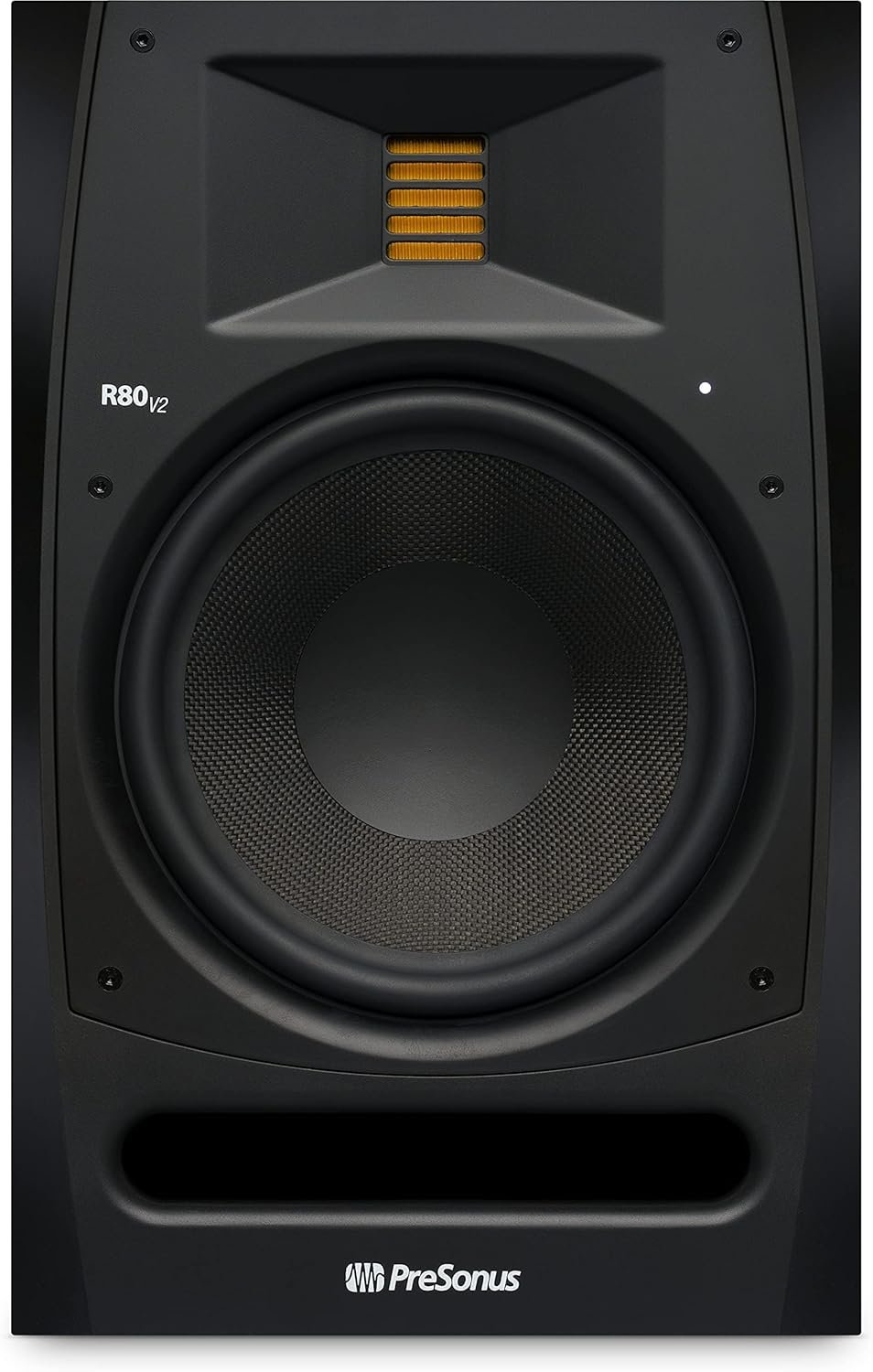When it comes time to outfit your studio with hard-working monitors, consider a pair of PreSonus R80 V2 8-inch Powered Studio Monitors for stellar sound and malleability in one package. R80 V2 active monitors feature custom 6.8-inch Air Motion Transformer tweeters that deliver superb transient response and ultra-low distortion. A custom-designed 8-inch woven LF driver provides significantly more dynamic output than standard models, due in part to the cone's ability to maintain a more constant dispersion pattern across its frequency response range. PreSonus made sure to outfit the R80 V2 with all the tools you need to fine-tune its sound to perfection, with convenient controls around the back for boosting and cutting EQ frequencies and dB levels. Throw in a 140-watt Class A/B amplifier for providing plenty of power, and the R80 V2 pumps out waves of the exceptional sound you crave with the flexibility to work in any studio.