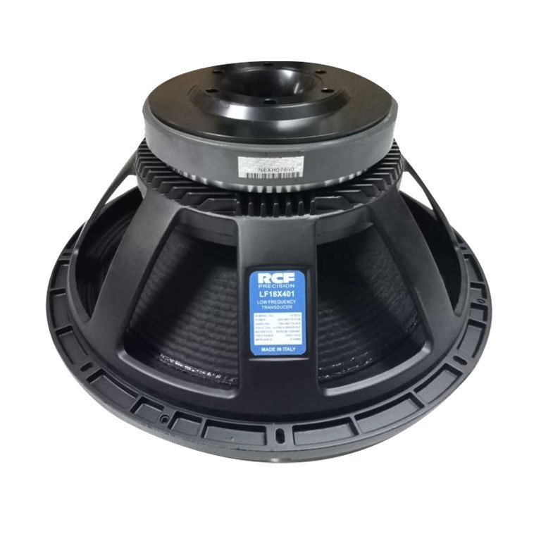 Very linear frequency response characteristics, extreme high power handling while generating the lowest harmonic distortion of any comparable 18-inch transducer within its application range. The LF18X401 uses a fibre loaded cone assembly along with a high excursion triple roll surround. This combination provides remarkable strength and a peak to peak maximum excursion of 50 mm. The new dual forced hyper-venting system guarantee a very efficient voice coil ventilation for minimum power compression and incredible power handling.