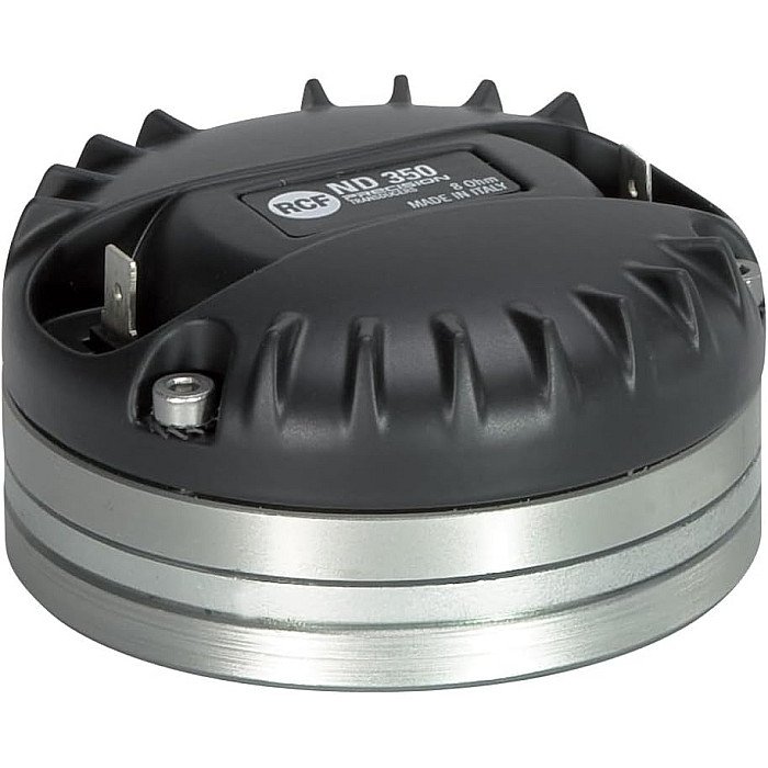 The ND350 is a high frequency performance 1.75-inch diaphragm compression driver with a 1-inch exit throat. The diaphragm is precision formed from polyester. Voice coil assembly is designed using high temperature kapton former and rectangular profile copper clad aluminium wire assembled using advanced specially formulated adhesives. Genuine RCF Precision transducers N 350 8Ohm 15120056. SUITABLE FOR ART 300, 300A SPEAKERS, etc