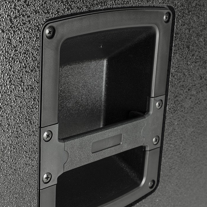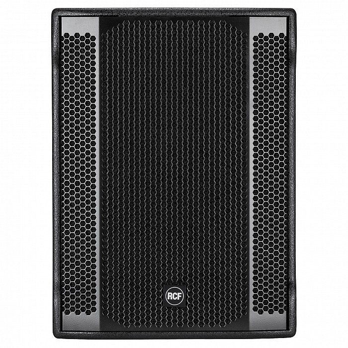 The RCF cabinets are made of the best multi-ply hardwood coated with a textured black finish. The subs are stackable and light-weight, for easy set-up and tear down, thanks to the ergonomic handles. A pole receptacle on top and side allows the use of the box in various configurations. The powder coated front grille integrates a special transparent-to-sound foam backing on the inside to further protect the transducers from dust.