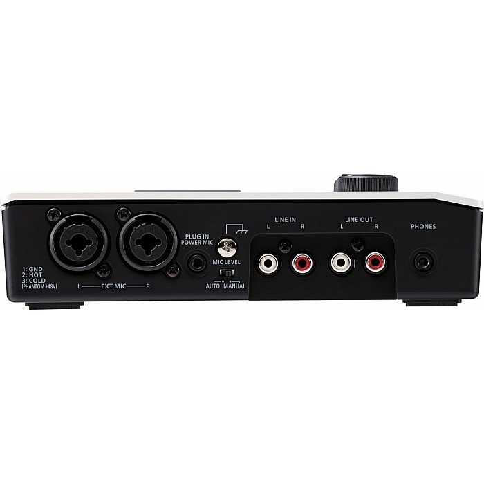 • Multiple inputs for connecting external devices—two XLR/TRS combo jacks with phantom power; Plug In Power mic jack; stereo RCA LINE IN jacks