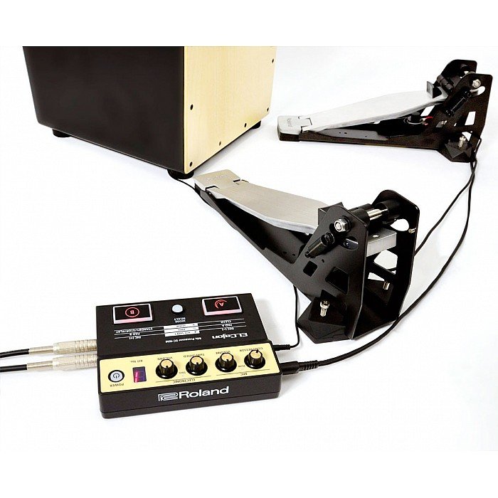 The EC-10M can be used with a mini cajon or even a cardboard box—in fact, any clip-on microphone will stick. Regardless of the size of the instrument you're playing, the sound can be transformed into a percussion sound using the EC-10M. Acoustic guitar bodies can also be used with the EC-10M by attaching a clip-on microphone to the guitar sound hole. The possibilities are endless. Learn more by watching our quick start video.
