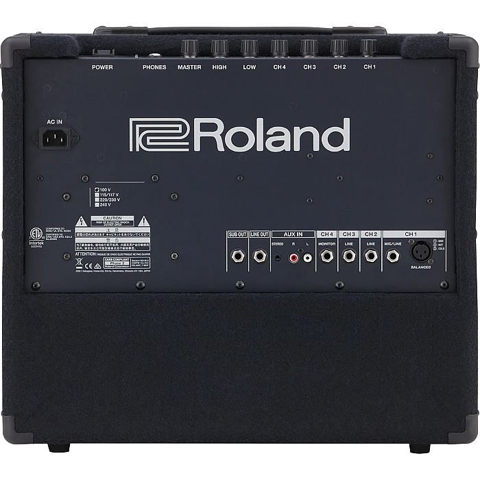 The Roland KC-200 4-channel keyboard amplifier is an outstanding solution for amplifying your keyboard and synthesizers, complete with onboard mixing and full-range sound. In fact, it's also a well-equipped portable PA with an auxiliary input for external audio and an XLR microphone input for vocals. With a 12" woofer and a separate tweeter driven by 100 watts of power, the KC-200 is ready for practice sessions and gigs.