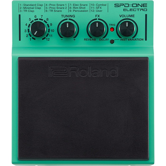 The SPD-One Electro drum pad comes loaded with a library of 22 classic 808 and 909 percussion sounds, so it's a blast to play, right out of the box. Want to use your own sounds? No problem! Just connect it to your computer via USB and drop in the WAV files you want to play. Once you've loaded up the samples you want to play, there are several onboard options that let you further customize your SPD-One Electro's sound. For starters, you can tune your samples up or down to get them to fit in with the rest of your kit or to create cool special effects. Speaking of effects, built-in reverb and delay are also great ways to make the most of your drum sounds.
