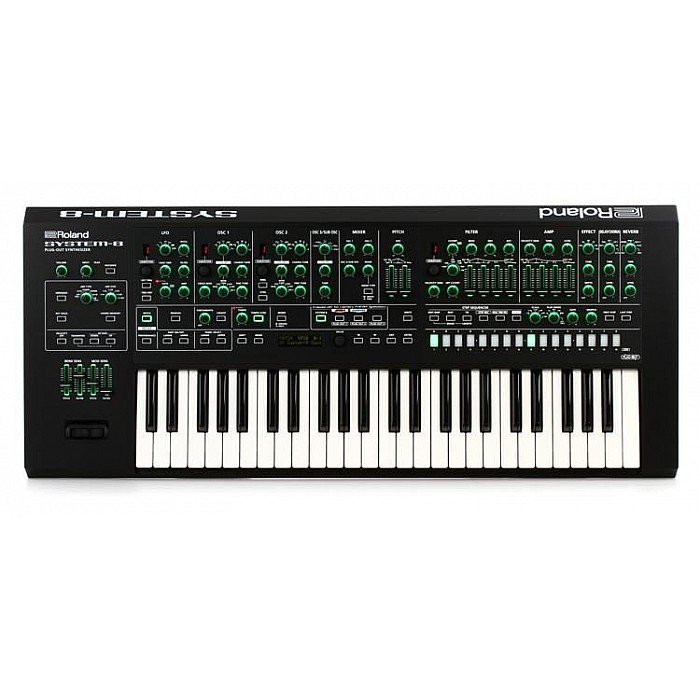 Generations of keyboard players here have sworn by Roland synths, and the next-gen System-8 delivers all the sounds we've known and loved for decades. At the core of this awesome synthesizer is Roland's Analog Circuit Behavior engine, fueling three oscillators across eight voices, all loaded with filters, effects, and a massive array of modulation options. In addition to its amazing internal sound engine, Plug-out technology lets you load up completely different synth engines — Jupiter-8 and JUNO-106 Plug-outs included — and you can switch between three models on the fly. Talk about killer sound flexibility! Top it off with an interface that's both classic and futuristic, split and layered synths, an integrated vocoder, and much more. The System-8 offers everything a keyboard player could ask for.