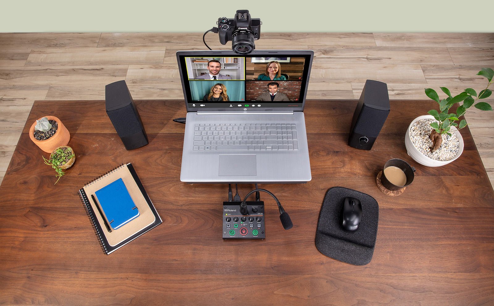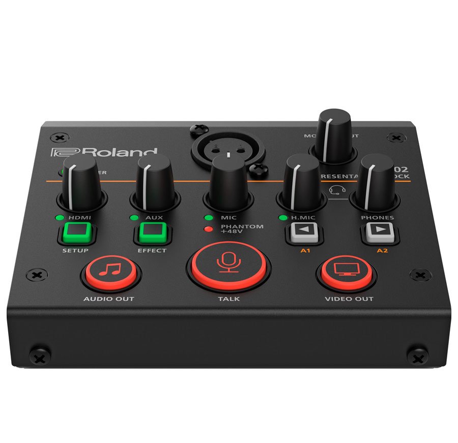 The Roland UVC-02 offers a high-performance upgrade for your business streaming with top-level audio and video. What's more, it fits conveniently on your desktop. This control center accommodates a camera, an XLR-equipped microphone, and stereo audio sources. You also get an HDMI video input that supports embedded sound and includes automatic video scaling. This is automatically appears as a webcam and an audio source in most streaming applications. Your streams will sound amazing, thanks to pro-quality audio processing, sound effects, and more. You also get hands-on control of volume levels and audio/video muting, plus assignable buttons for custom-tailored controls. If you want easy control over your presentations and streams, the Roland UVC-02 delivers — without touching your mouse or keyboard.
