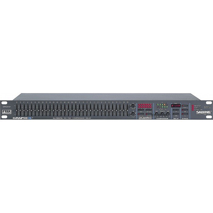 The GRQ2 combines eight indispensable audio products into one very affordable, all-digital package -- with an easy-to-use hands-on interface. With the touch of a fader you can shape your frequency response using the GRQ2's 31-band digital graphic EQ. Need more control? Use the parametric EQ to control your filter width, depth and frequency. Time-align your speakers with the digital delay. Manage your system gain with the GRQ2 digital compressor/limiter. Finally, add 3 to 9 dB of extra gain and automatic feedback control with Sabine's patented FBX technology.