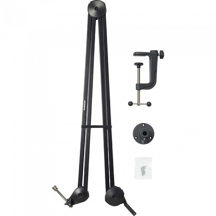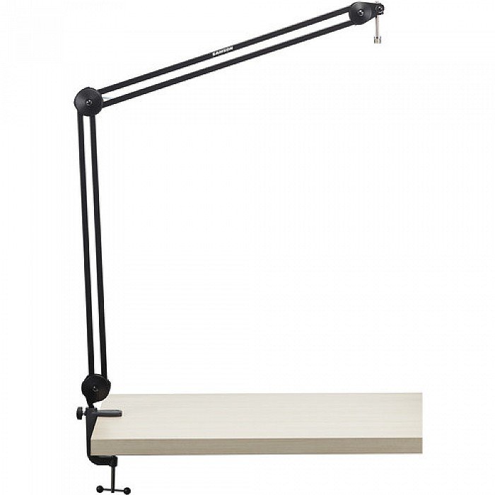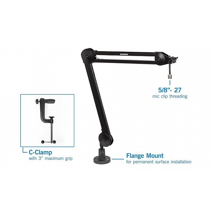 With two mounting options included, the MBA48 can be temporarily attached to a table or desk with the C-clamp mount, or more permanently fixed to a surface with the flange mount. In combination with durable steel construction, this mic boom arm offers a 5/8"-27 mic clip threading that can accommodate any mic weighing up to five pounds. If you are a desktop podcaster or are just wanting to record vocals from the comfort of your chair, the MBA48 48 Inch Broadcast Microphone Boom Arm with Desk Clamp from Samson has the features and design that make both easy.